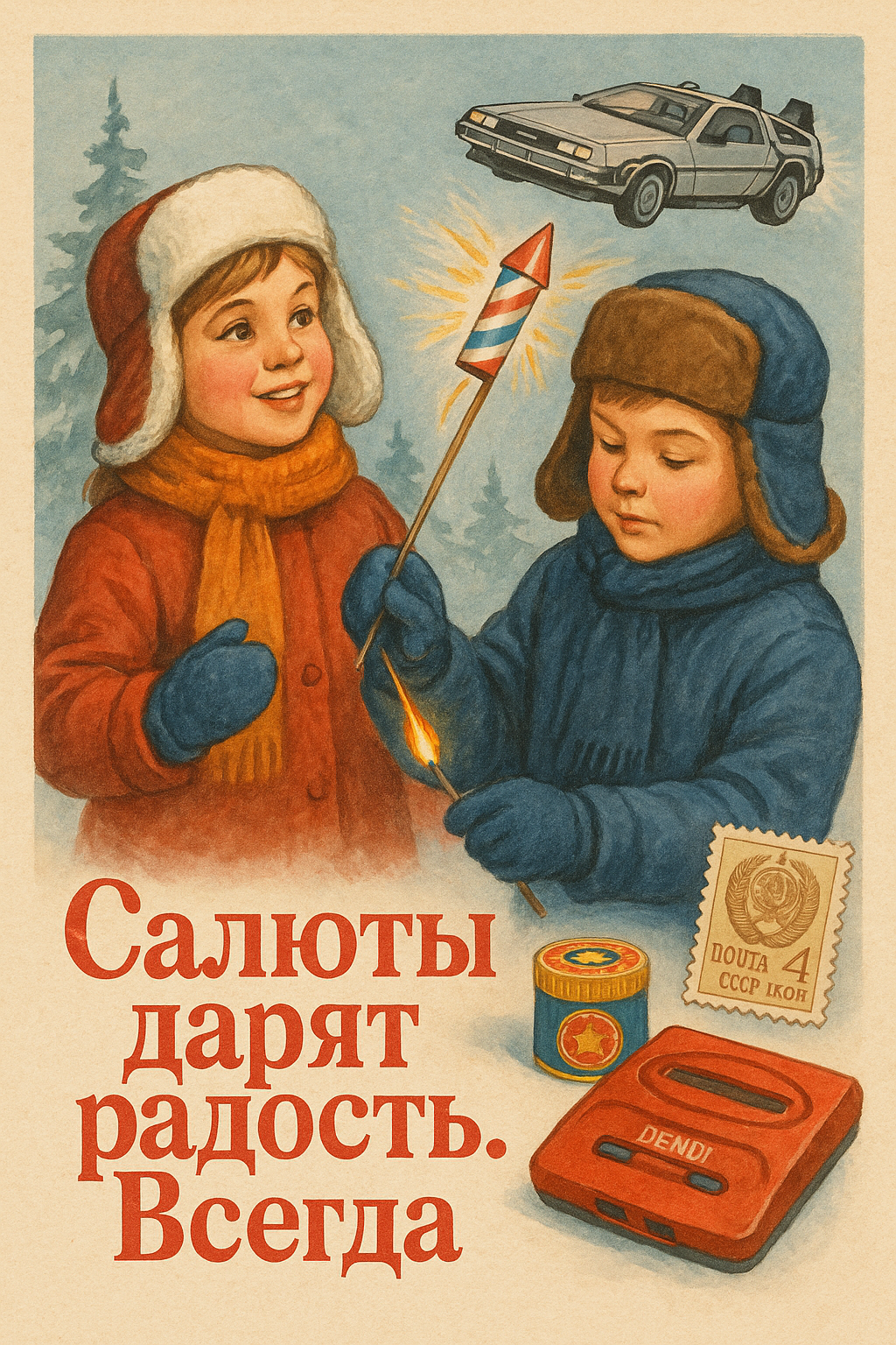 Именно поэтому в рамках подготовки к «Назад в праздник» мы создали серию плакатов и визуалов, где герои прошлого встречаются с героями настоящего.
