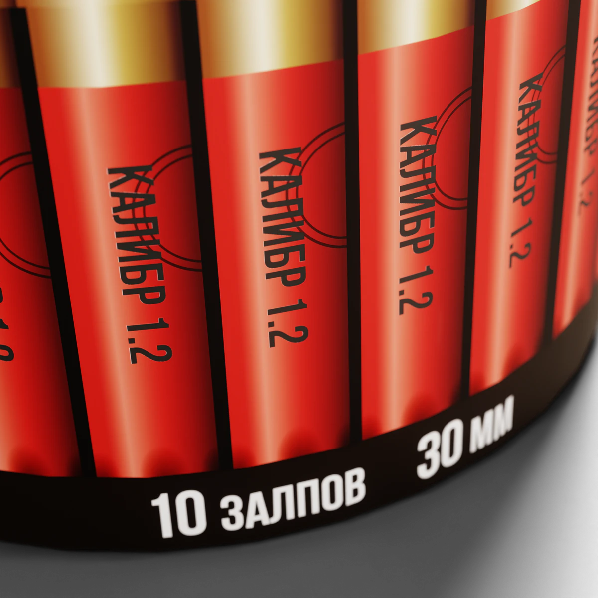 Для тех, кто ценит силу и эффектность! 10 залпов калибра 30 мм, упакованных в стильный дизайн с атрибутикой оружейной тематики, создадут яркое и запоминающееся шоу. Как залп дробовика — резкий, громкий и невероятно зрелищный!