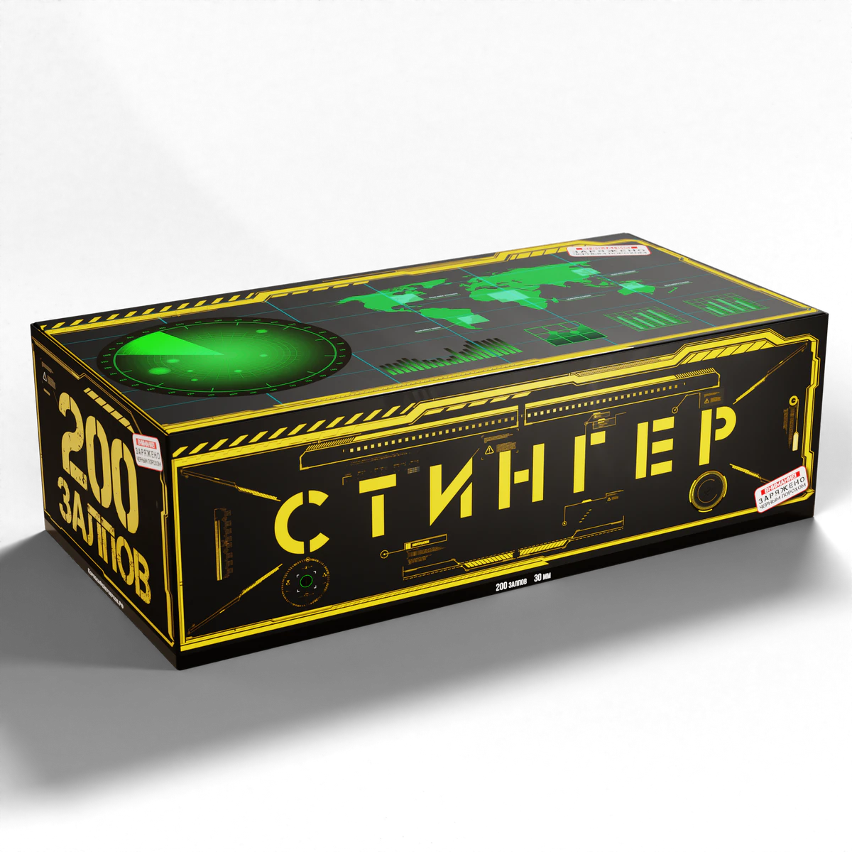 Возьмите на прицел самый зрелищный праздник с фейерверком «Стингер»! 200 залпов калибра 30 мм, упакованных в стилизованный чёрно-жёлтый корпус с дизайном командного пункта, подарят вам шоу, где каждый залп — это точное попадание в цель под названием «восторг».
