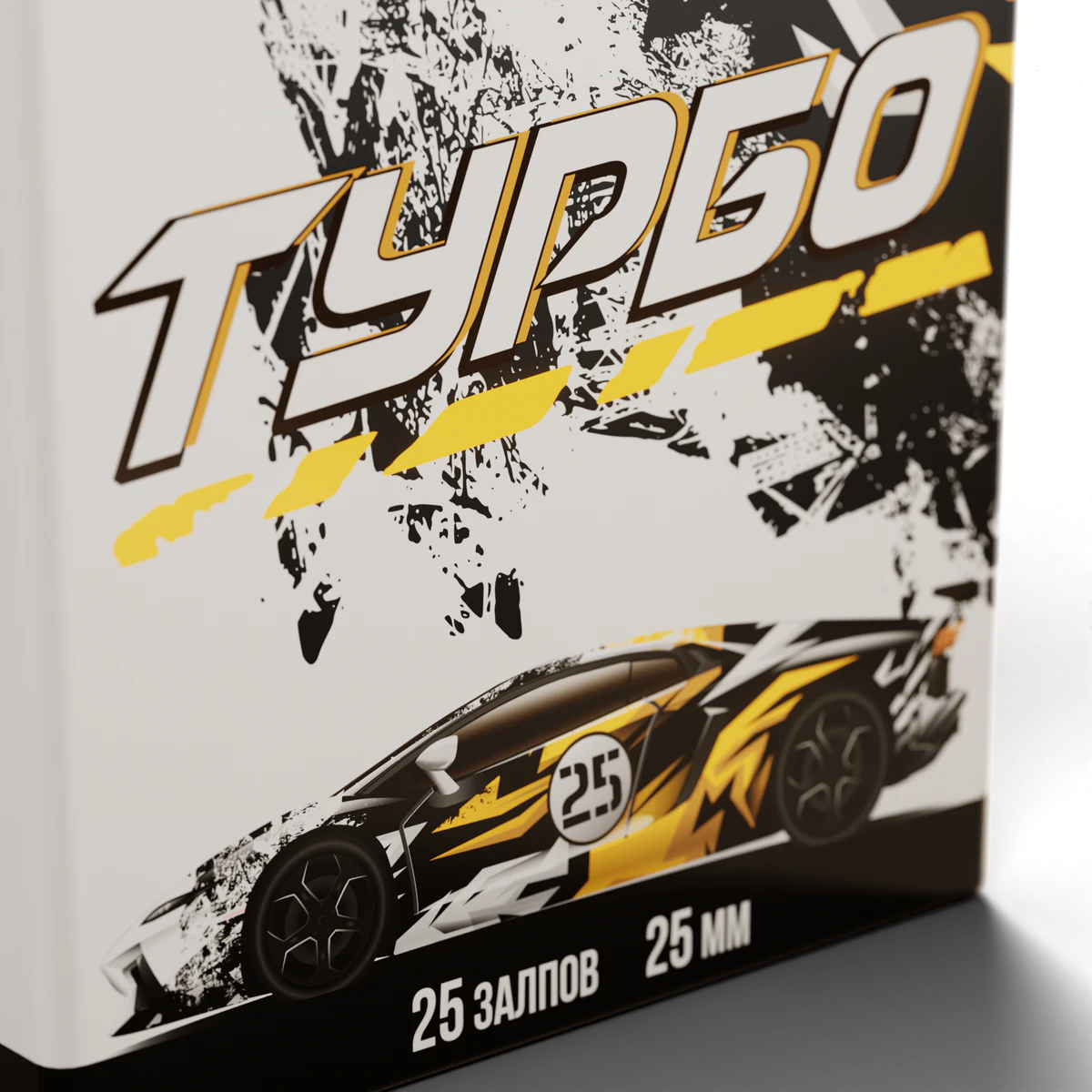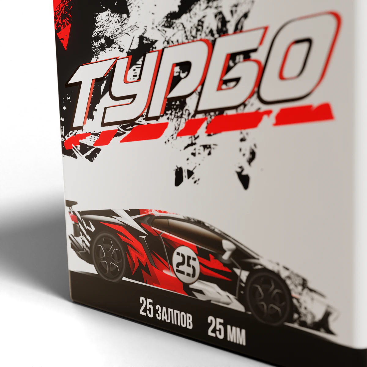 Почувствуйте себя гонщиком на трассе с фейерверком «Турбо»! 25 залпов калибра 25 мм, упакованных в динамичный дизайн с гоночной машиной, подарят вам незабываемые эмоции скорости и мощности. Яркие краски, энергичные эффекты и молниеносный финал — как финиш на чемпионской трассе!