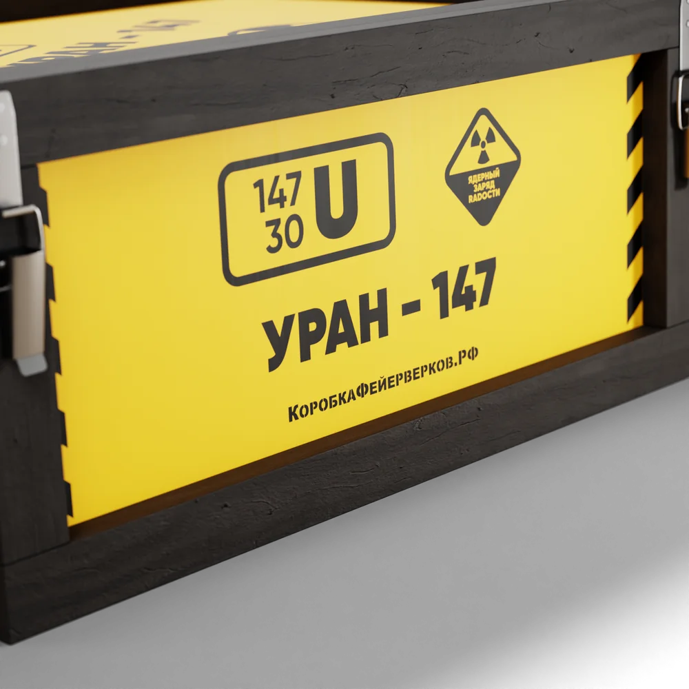 Откройте для себя силу стихии с фейерверком «Уран»! 147 залпов переменного калибра, упакованных в массивный деревянный ящик с чёрно-жёлтым оформлением, подарят вам незабываемое шоу, где каждая вспышка — это высвобождение невероятной энергии.